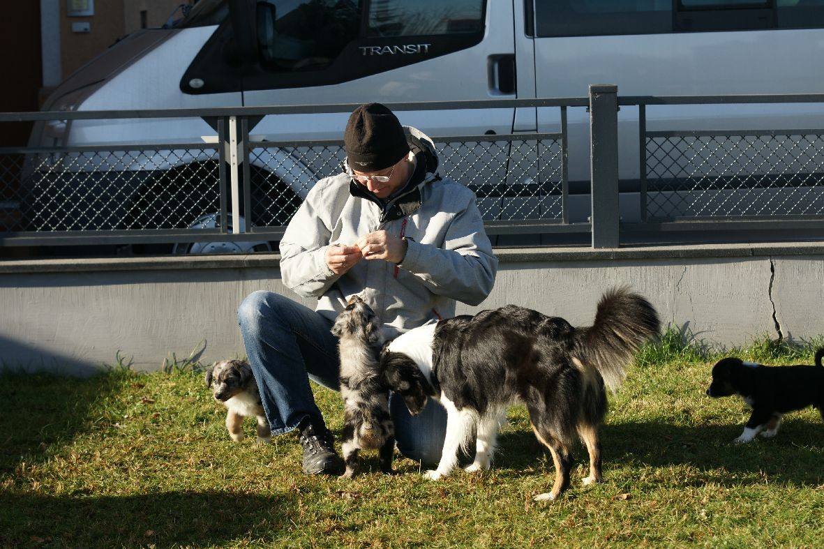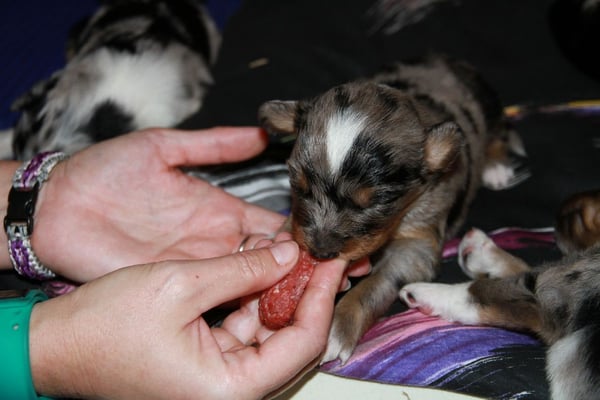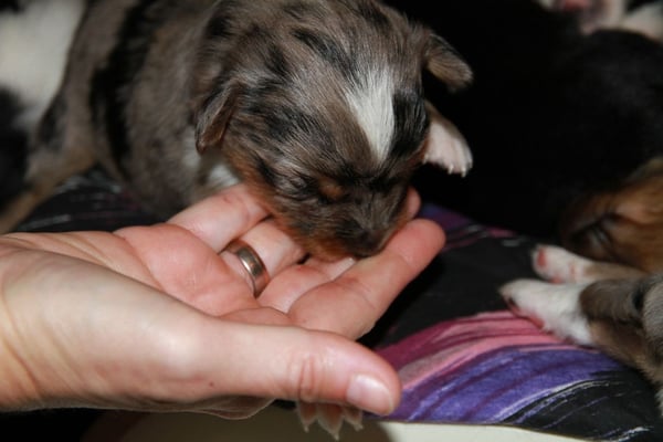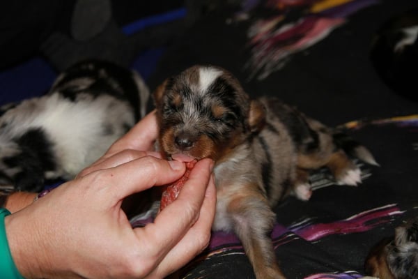 4:55 Uhr kam die nächste Blue Merle Hündin zur Welt. Sie hatte es schon sehr eilig - nur 10 Min. nach Hündin 1 ;-).