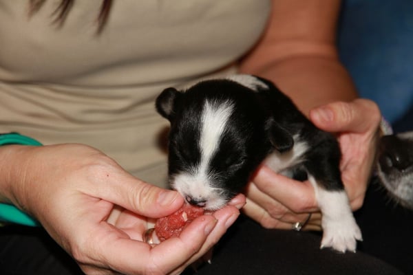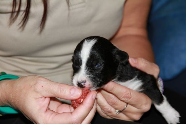 Erste Fleischmahlzeit erhalten :-). 8 g Mageres Meisl doppelt faschiert.